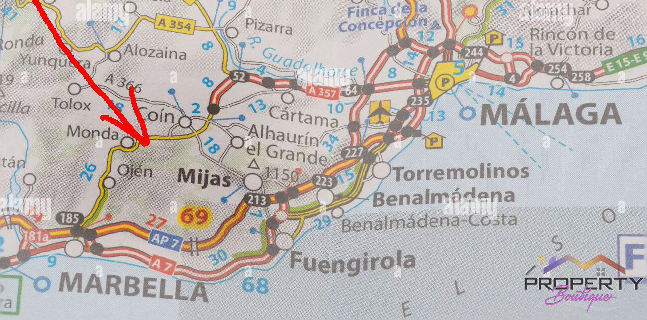 Ubicado en una posición ideal entre Málaga y Marbella (18 Km de Marbella), cuenta con 3 accesos (el más fácil a solo 350 m de la carretera principal de Ojén, detrás de la gasolinera BP de Monda, al final de un corto camino de hormigón). La parcela está protegida por una ladera (por lo que es totalmente tranquila). Su terreno, vallado y cerrado, se encuentra en un valle privado junto a un pinar, con mucha privacidad y, a la vez, rodeado de montaña y bosque, con vistas a Coín. Actualmente cuenta con algunos olivos y almendros (y otros están brotando) y el entorno del pinar es simplemente pintoresco.